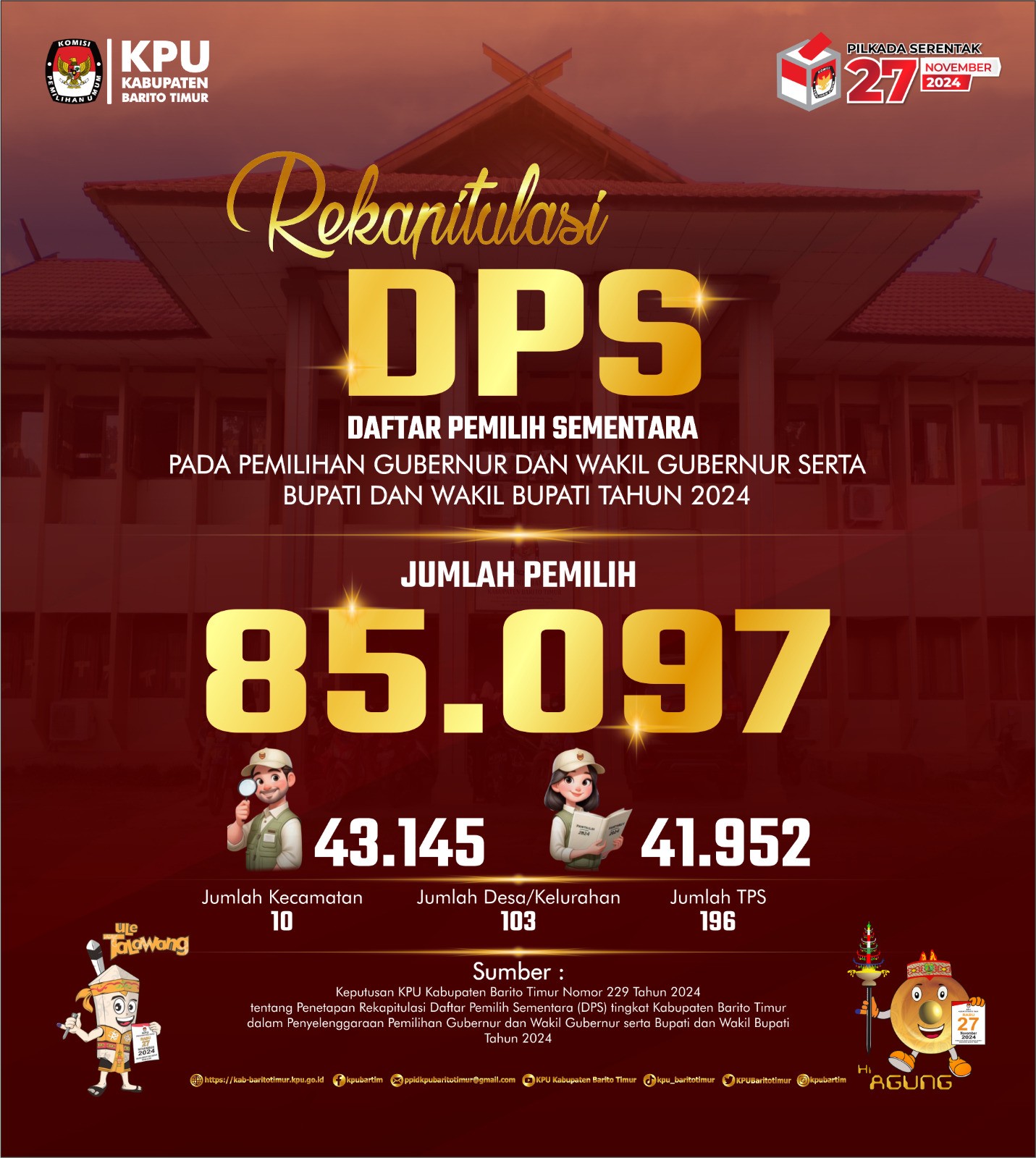 BERSAMA INI KAMI LAMPIRKAN REKAPITULASI DAFTAR PEMILIH PEMILIH SEMENTARA (DPS) TINGKAT KABUPATEN KABUPATEN BARITO TIMUR DALAM PENYELENGGARAAN PEMILIHAN GUBERNUR DAN WAKIL GUBERNUR SERTA PEMILIHAN BUPATI DAN WAKIL BUPATI TAHUN 2024